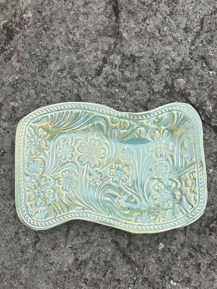 Add Handmade Pottery Floral Turquoise Tray to the cart