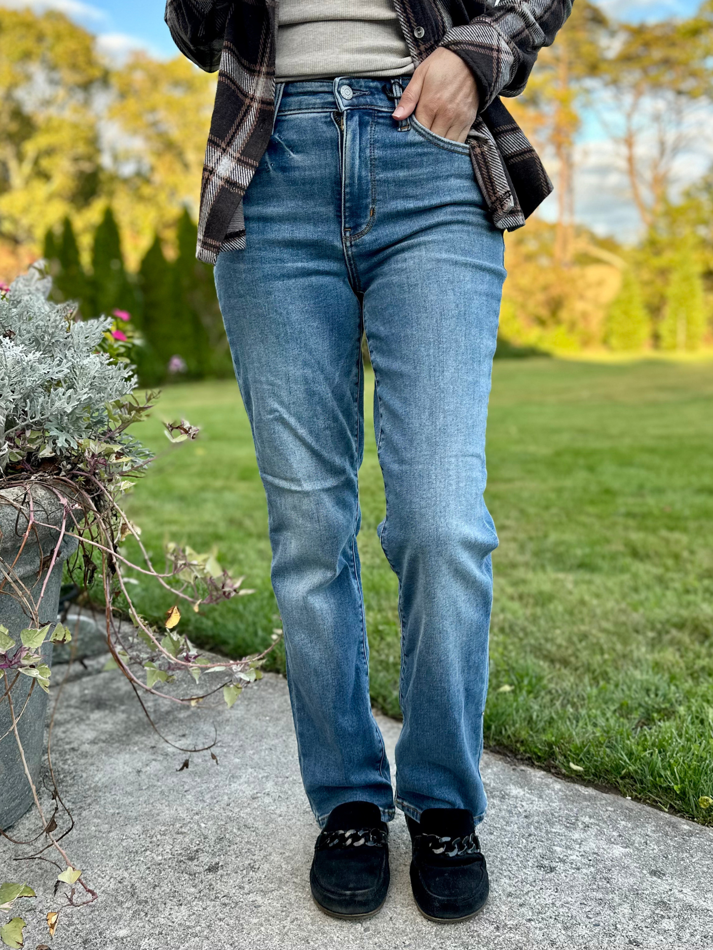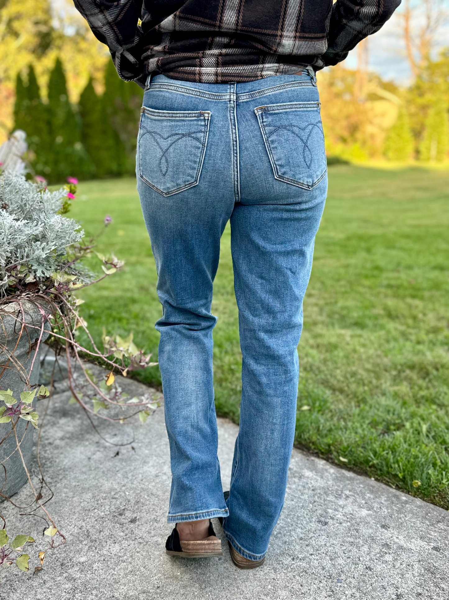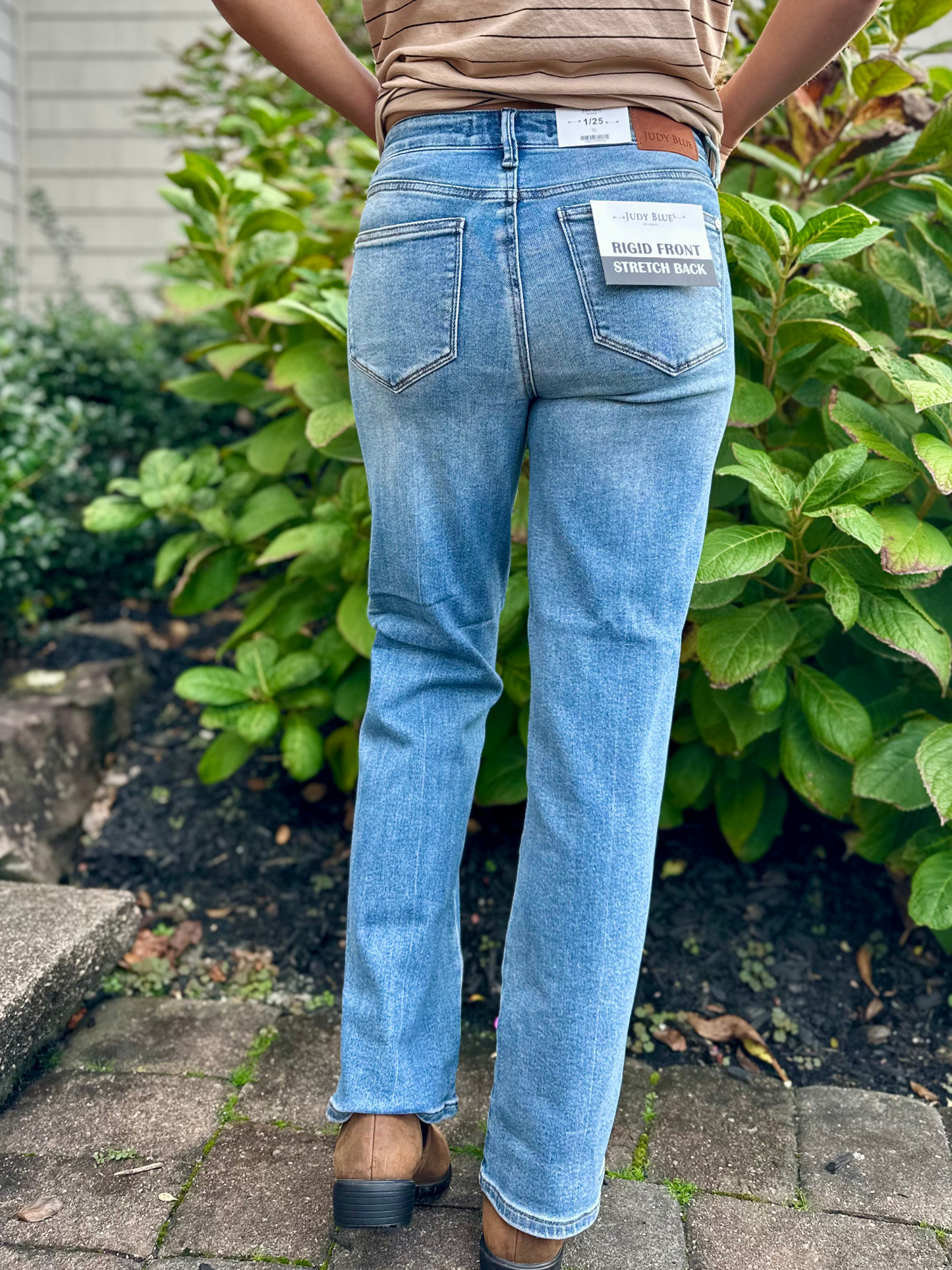 Judy Blue Midrise Slim Straight Rigid Magic Buttonfly Jeans