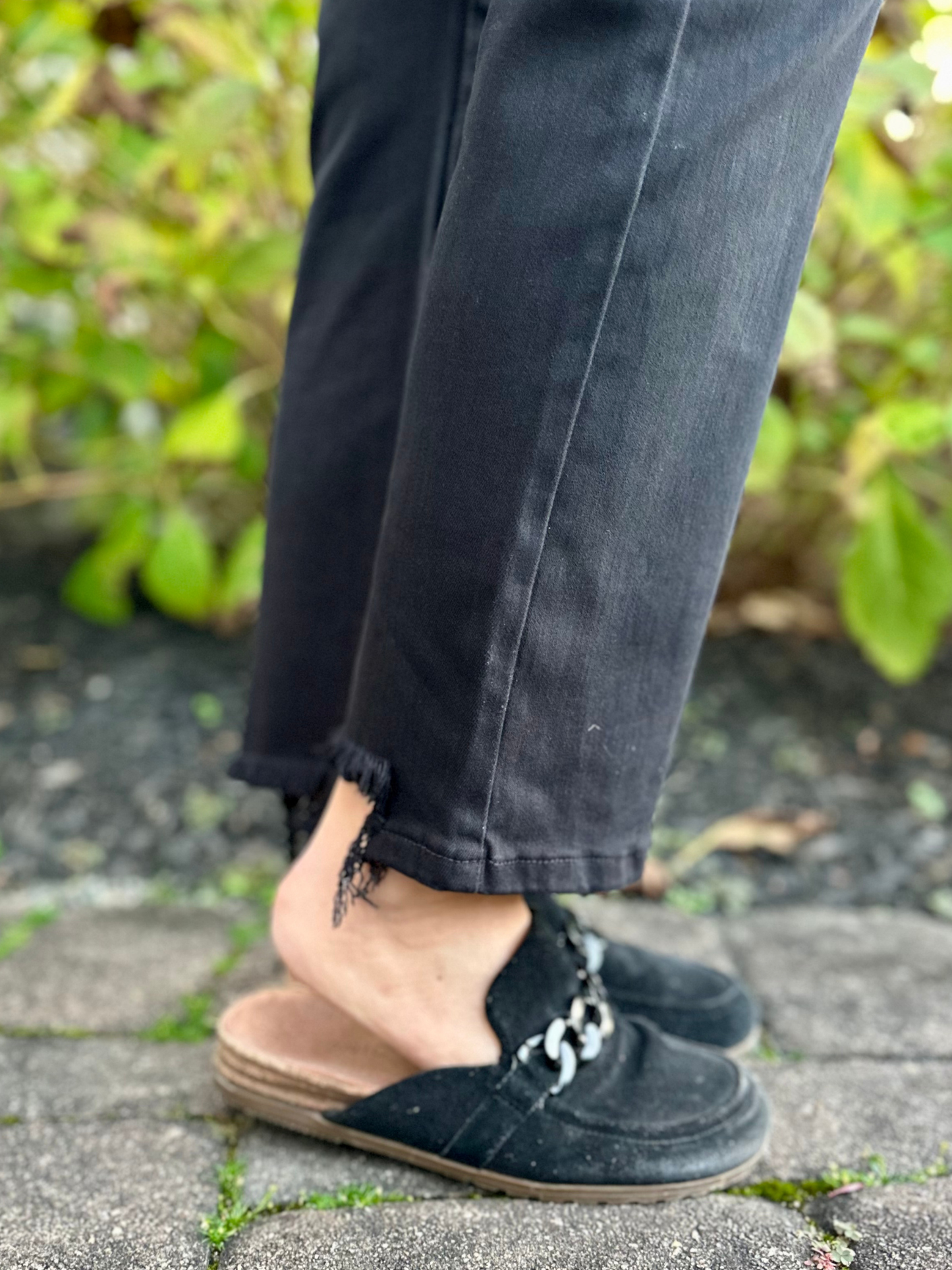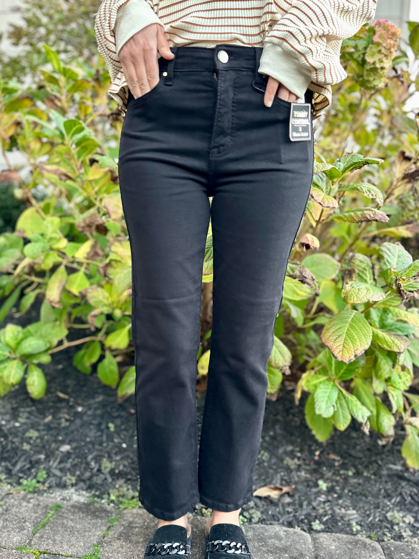 Risen Tummy Control High Rise Black Straight Cropped Pants
