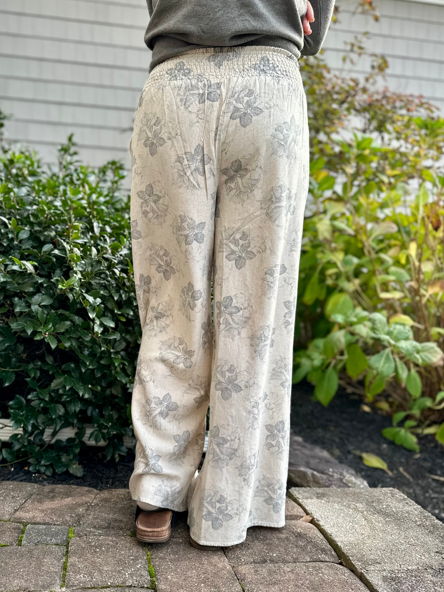 Effortlessly romantic, these floral print boho pants feature a smock waist that flatters while providing comfortable all-day wear. The flowing silhouette and botanical print capture free-spirited style, making them ideal for layering or wearing solo. Perfect for transitional seasons and versatile enough to dress up or down depending on your mood and occasion.