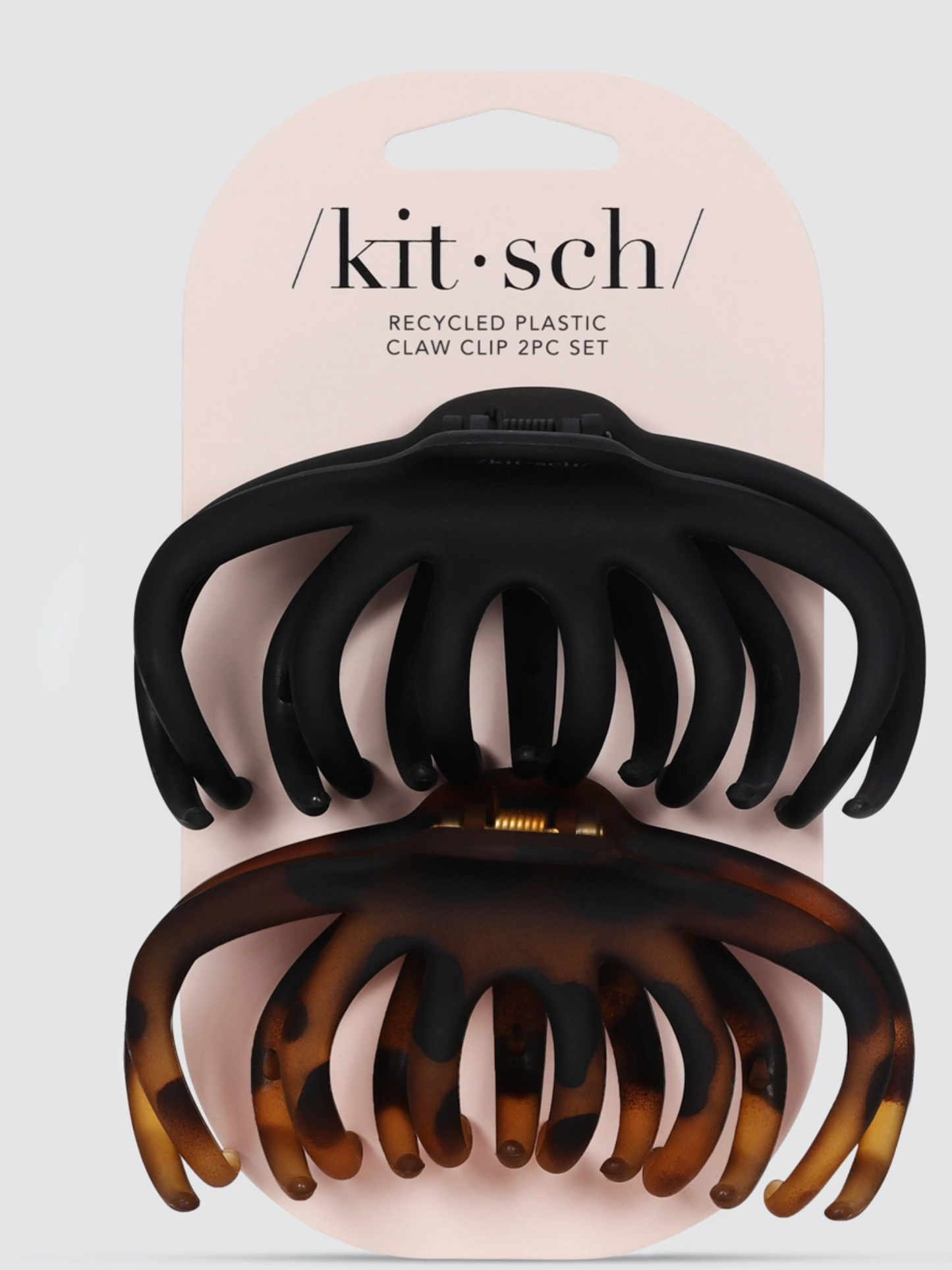 Recycled Plastic Octopus Claw Clips 2pc - Black & Tortoise