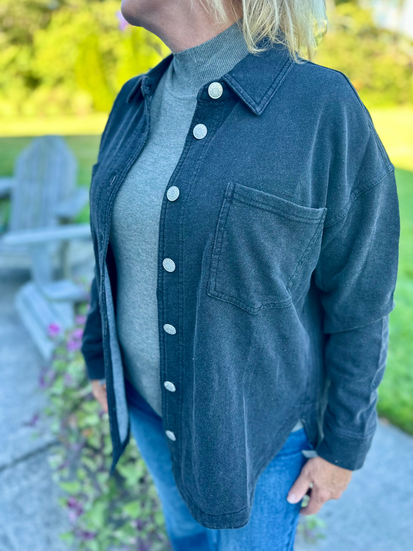 Garment Dyed Cotton Fleece Oversize Shacket.