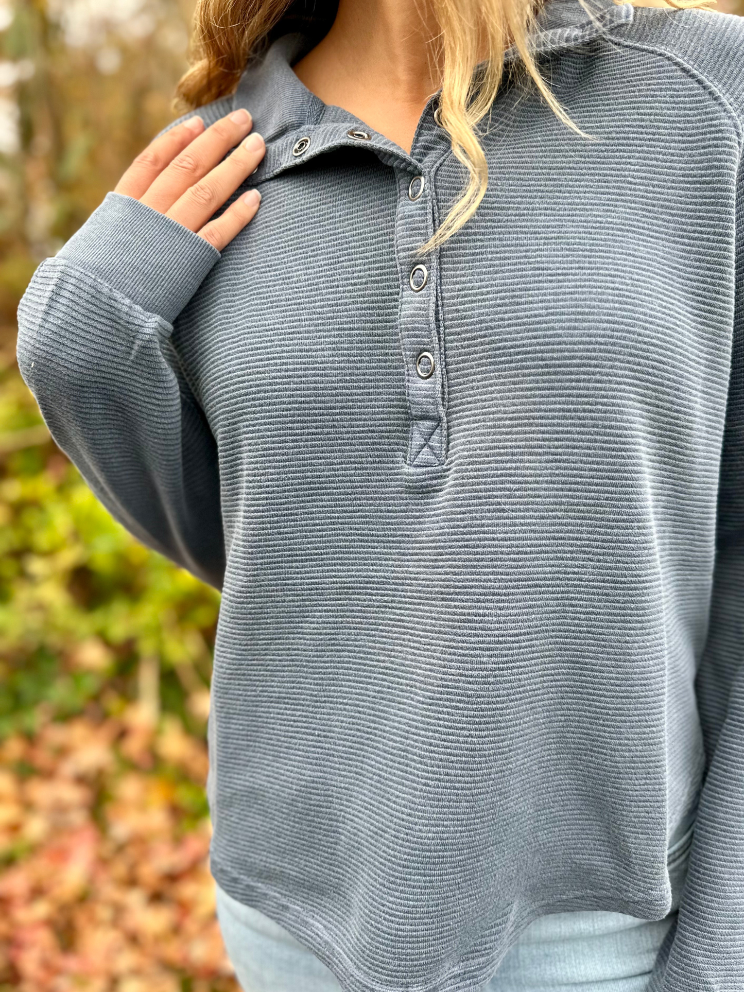 Half Snap Button Long Sleeve Knit Top in Denim – Wild Magnolia Skip to content