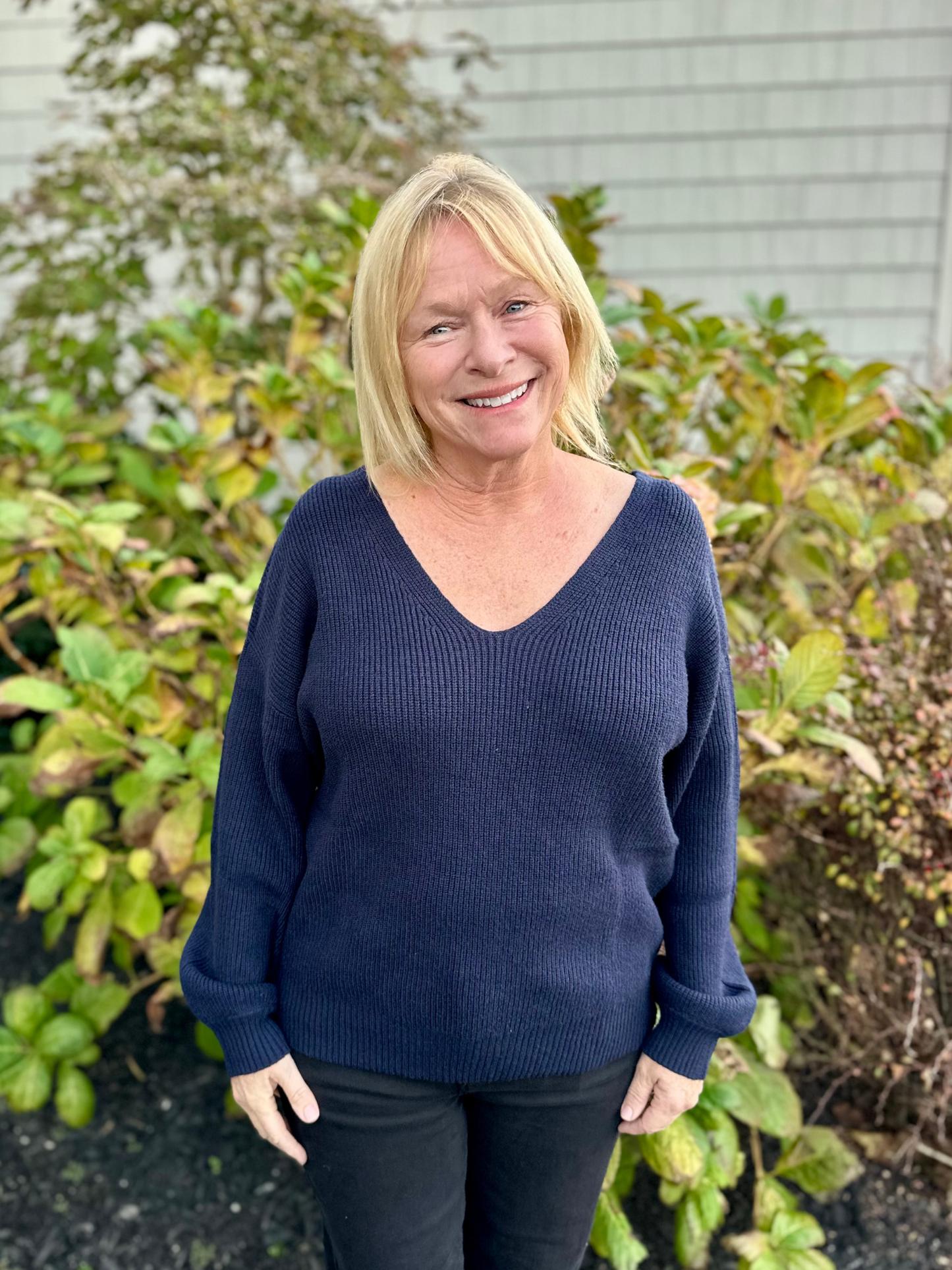 Long Sleeve Navy Top with Blue Ribbon This versatile navy top combines timeless elegance with refined detailing. The long sleeves provide coverage and sophistication, while the delicate blue ribbon accent adds a polished finishing touch. Crafted for layering or standalone wear, this piece transitions seamlessly from casual to more dressed-up occasions. The classic navy base pairs effortlessly with your existing wardrobe, making it an essential addition to any collection. Perfect for those who appreciate understated style with thoughtful design elements.
