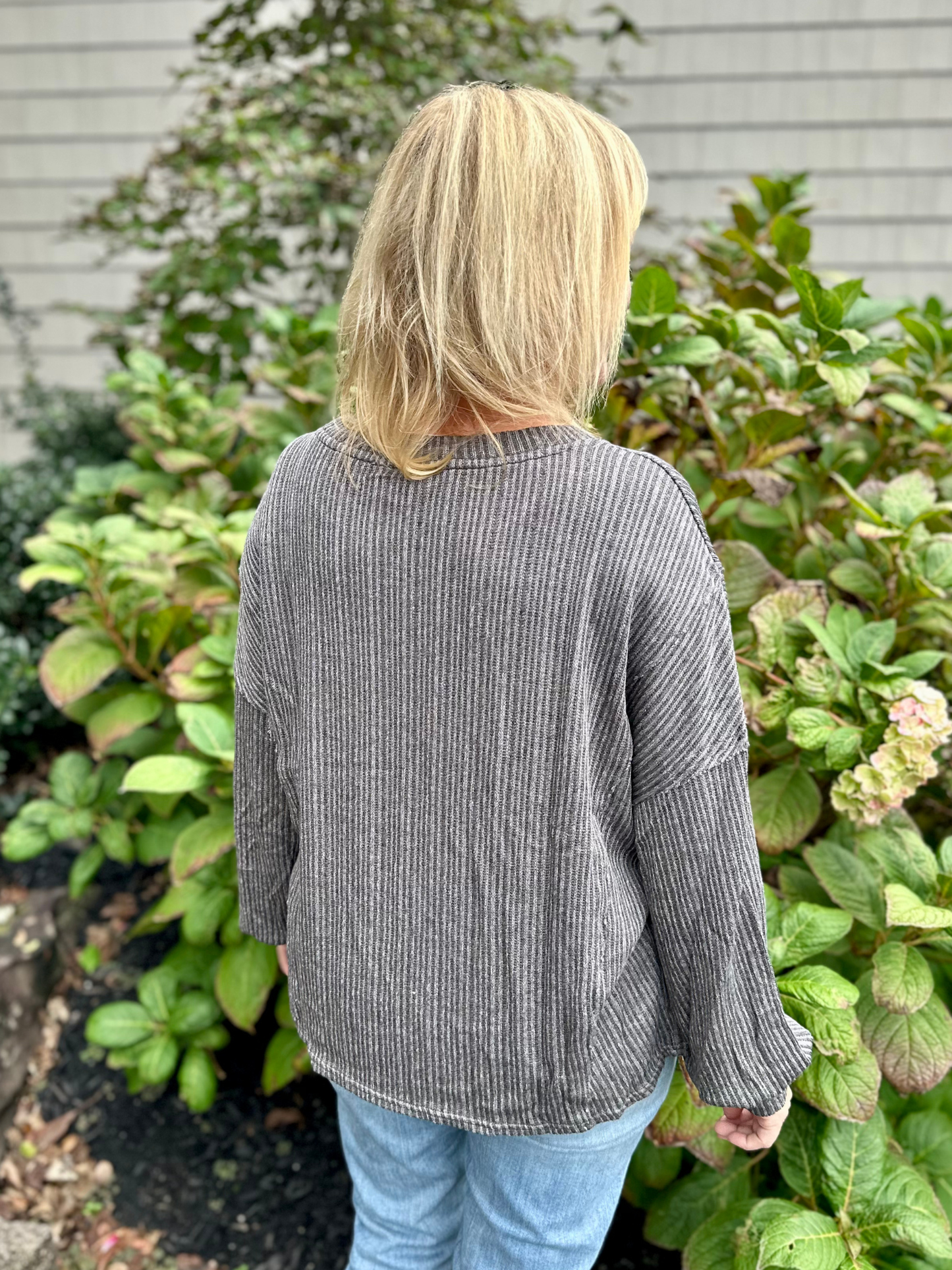 Long Sleeve Rib Knit Top in Charcoal.