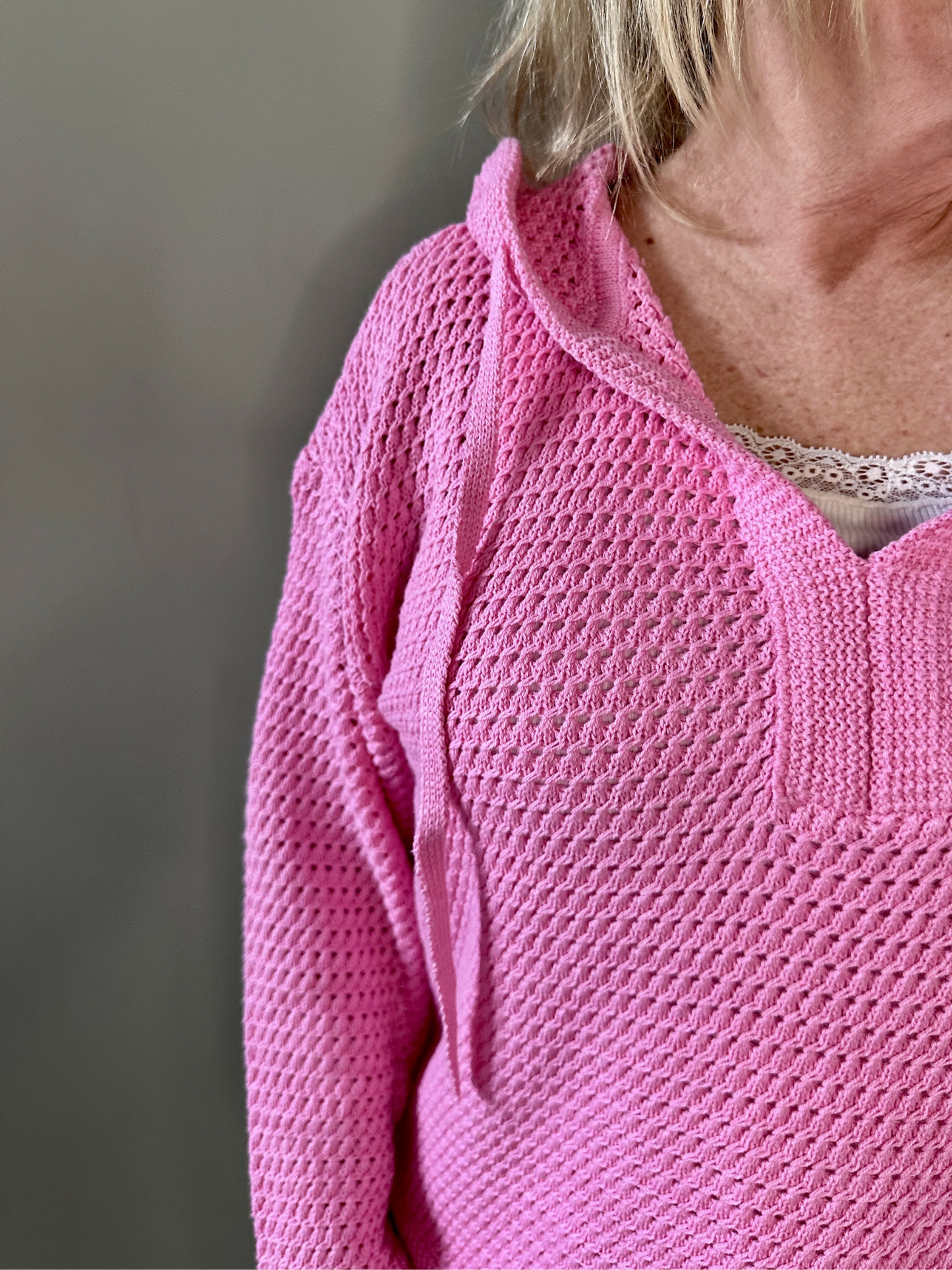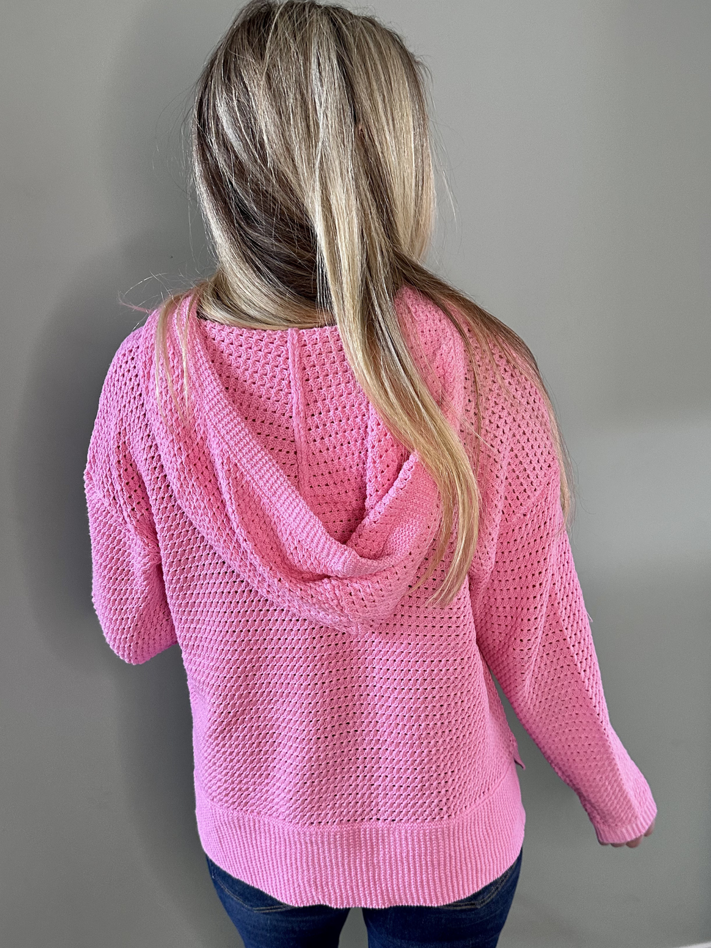 Knitted Sweater Hoodie in Pink.