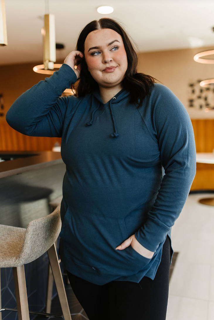 Sideslit Hoodie in Teal