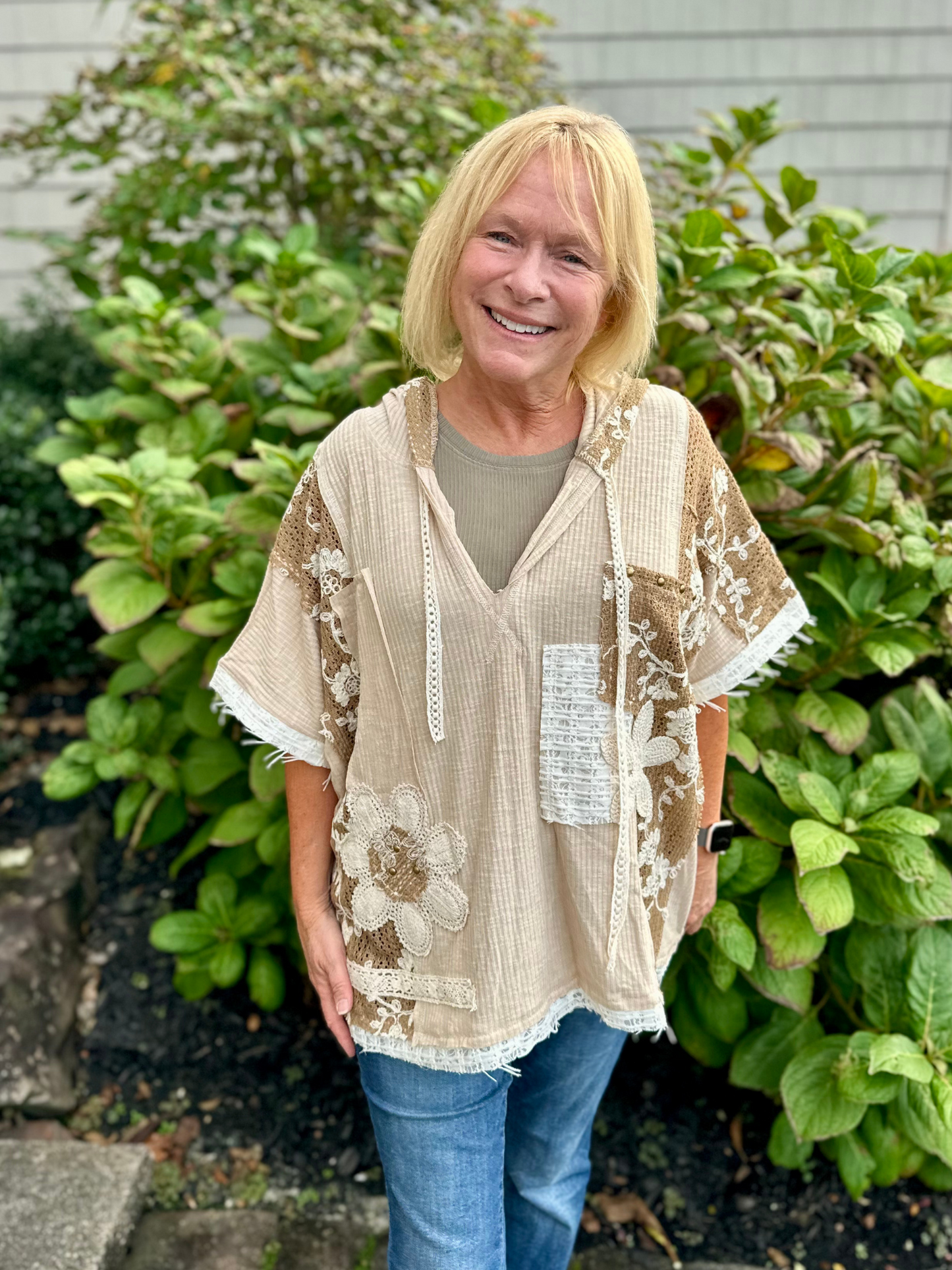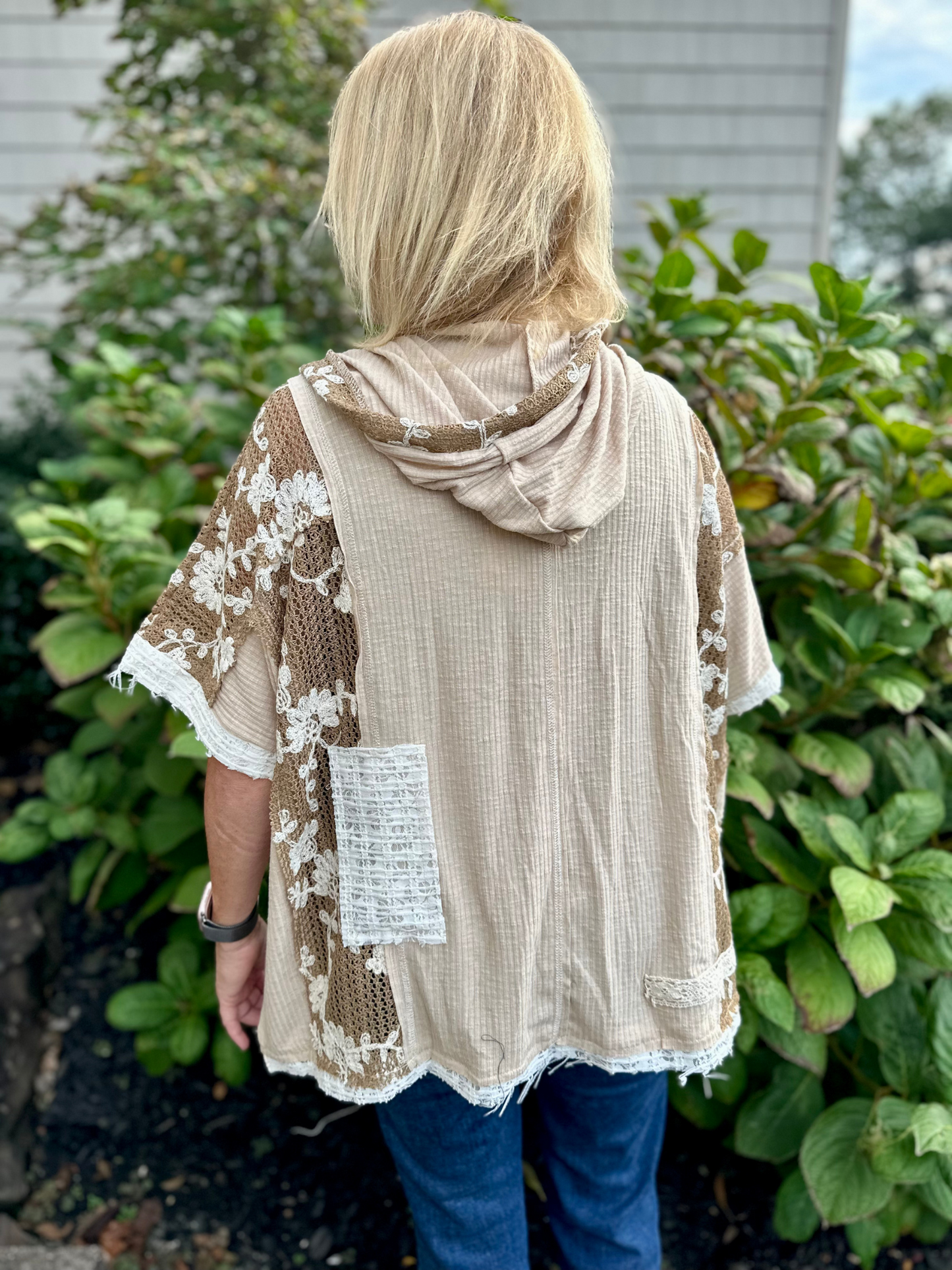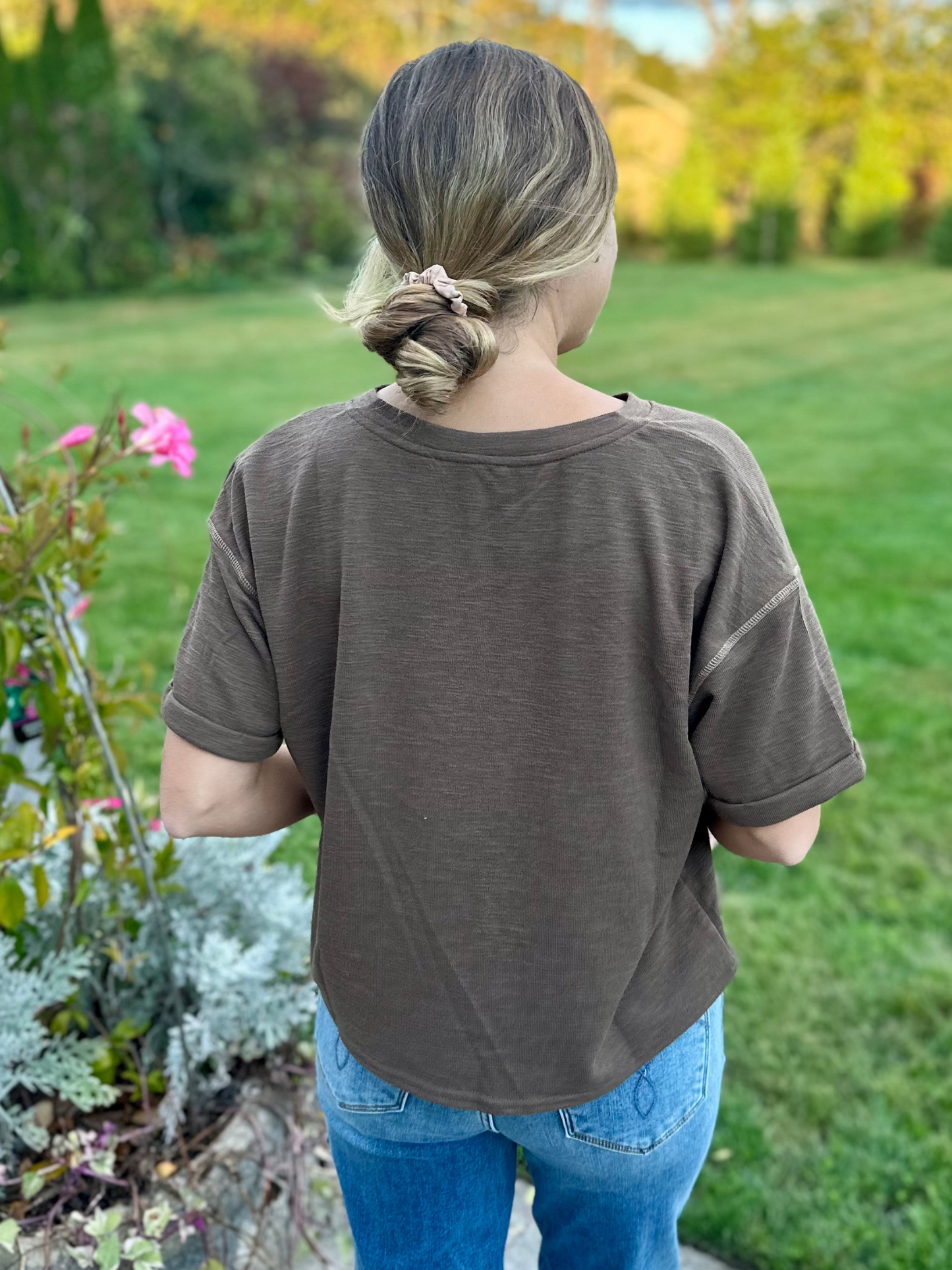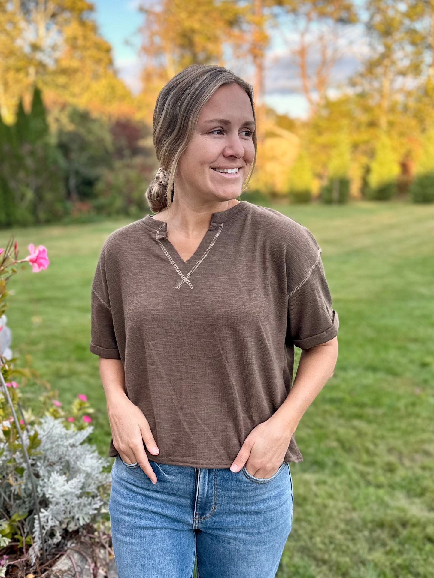 Contrast Stitch Drop Shoulder Knit Top in Mocha