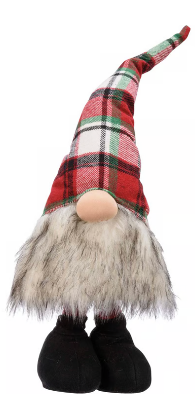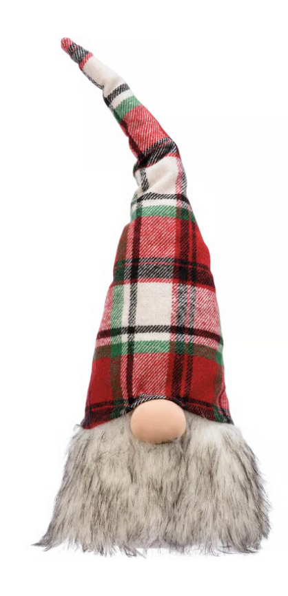 Meet your new holiday heros! This cheerful gnomes bring festive cheer with its charming plaid hats in classic Christmas colors. Complete with a gloriously fluffy beard and adorable fabric nose, this weighted wonder stays put wherever you place it. Stack them together in a group or individually to create a merry, coordinated display that'll have guests grinning from ear to ear. Perfect for adding personality and warmth to your seasonal décor.