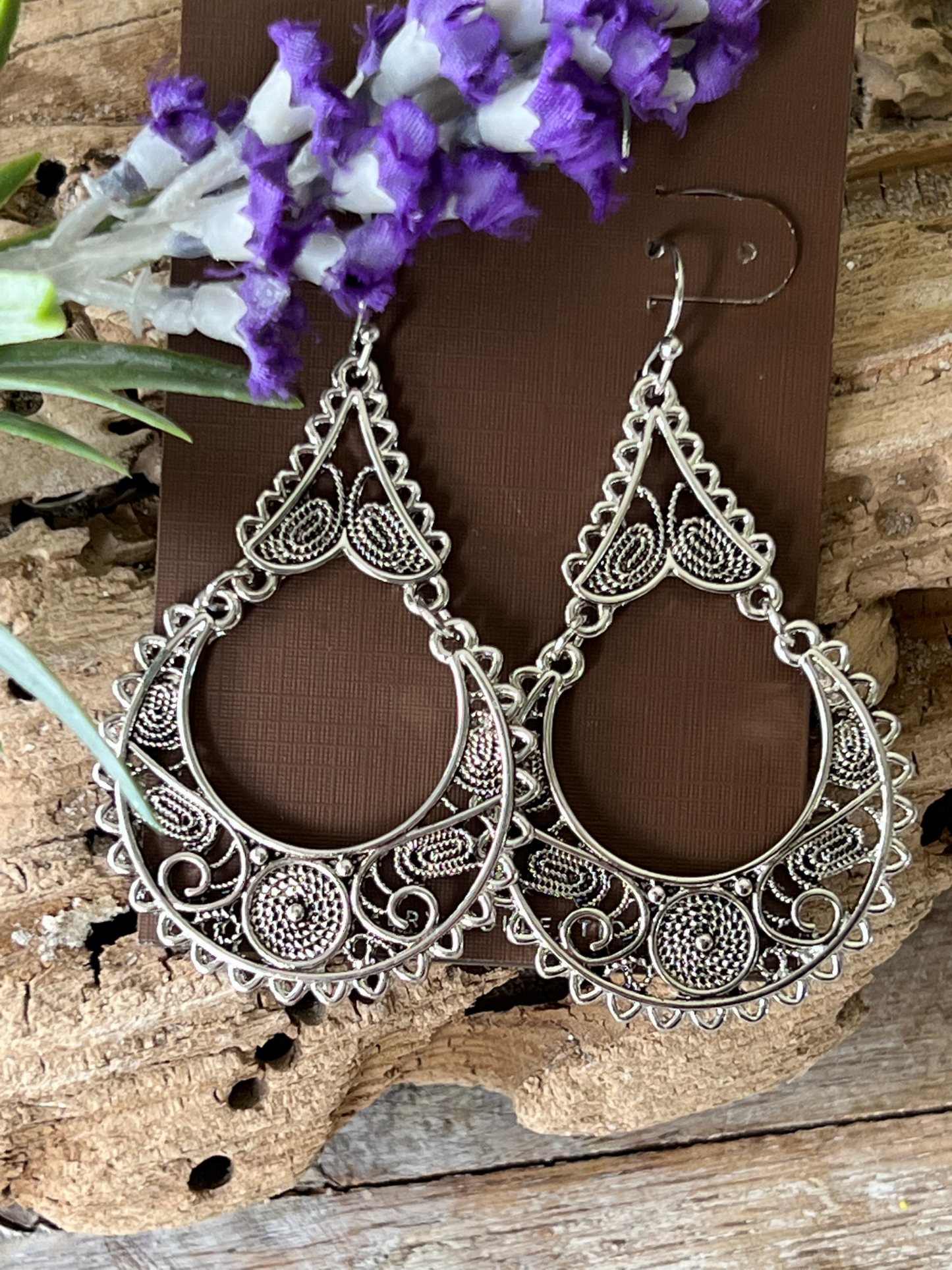 Silver Oxidized Bali Crescent Boho Drop French Wire Earring.