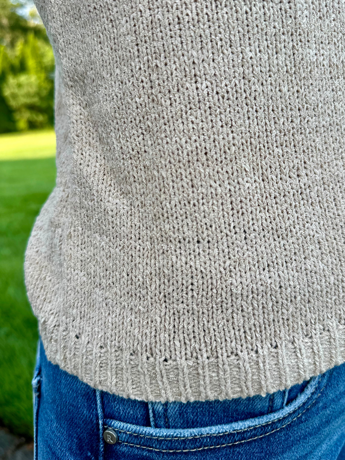 This sleeveless knit sweater in light taupe offers a refined blend of comfort and style. Crafted with a soft, breathable knit fabric, it provides lightweight warmth ideal for layering or standalone wear. The subtle olive hue adds a sophisticated touch, making it versatile for both casual and polished looks. Its sleeveless design ensures ease of movement and a modern silhouette, perfect for transitional seasons or indoor settings. Elevate your wardrobe with this expertly designed piece that balances functionality and understated elegance.
