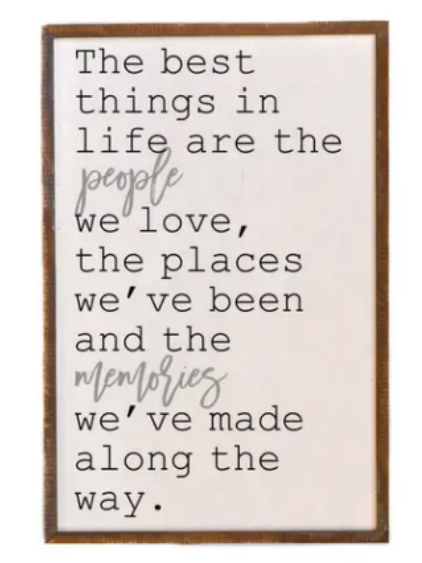 The best things in life art the people we love, the places we've been and the memories made along the way wall art. A perfect reminder of what is important in life. Sign measure 12 x 18.